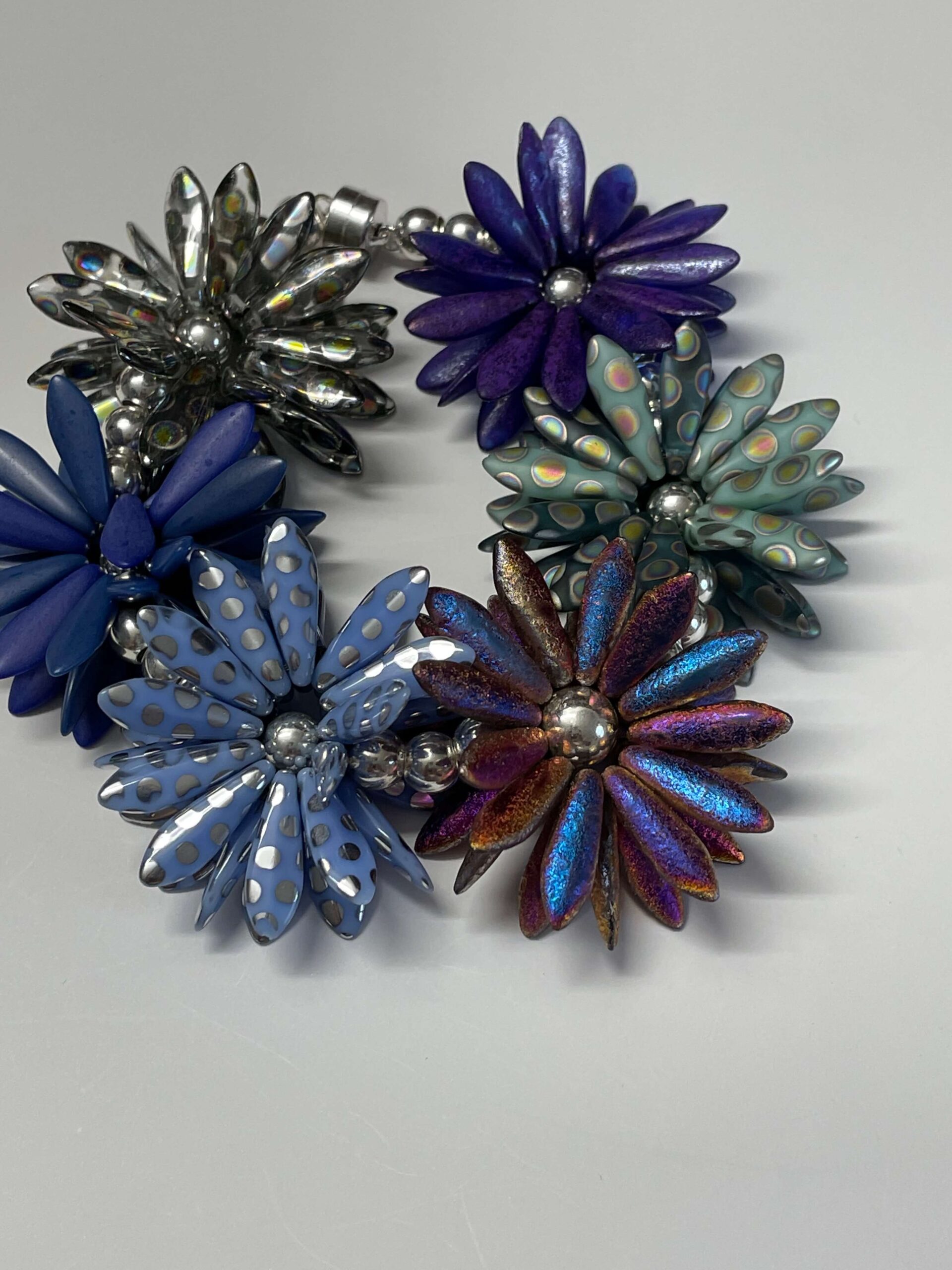 I am “self taught” but many have critiqued my work over the years. It brings me joy when folks see the results differently than myself. I embrace the ideas of others, while maintaining my original concepts. I am honored to have been included in Kate McKinnon’s Volume Two of Geometric Bead work, as well as, many issues of Bead Works magazine.